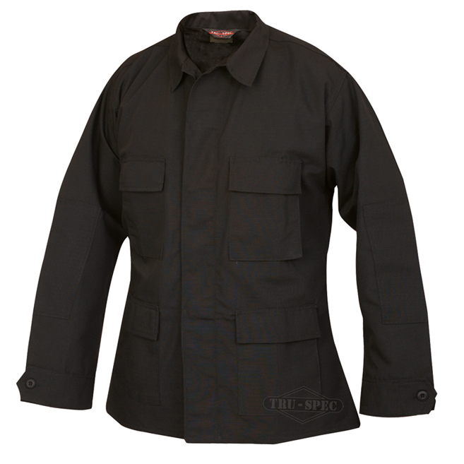 Tru-Spec Black BDU style 4 pocket jackets 65/35 Polyester Cotton Rip-Stop: Small Regular Length